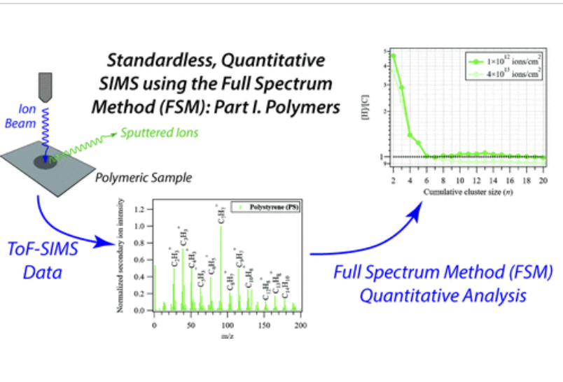 Mangolini’s group has pioneered the first demonstration of absolute hydrogen quantification in polymers using ToF‑SIMS, without standards or sensitivity factors. The approach, called the Full Spectrum Method (FSM), moves beyond relying on a handful of “marker” secondary-ion fragments. Instead, FSM sums the intensities of all detected secondary ions that contain the element(s) of interest, helping to reduce matrix effects that can distort absolute quantification.